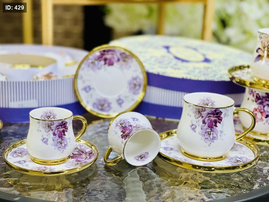 فناجين قهوة وشاي مورد 6+6 صحونهم علبة دائرية