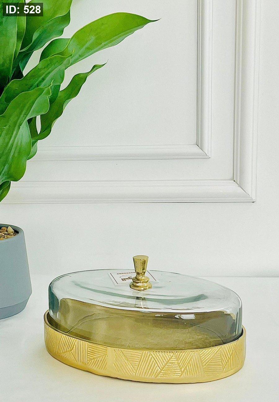 مضيفة نحاس مع غطا قزاز شكل بيضاوي