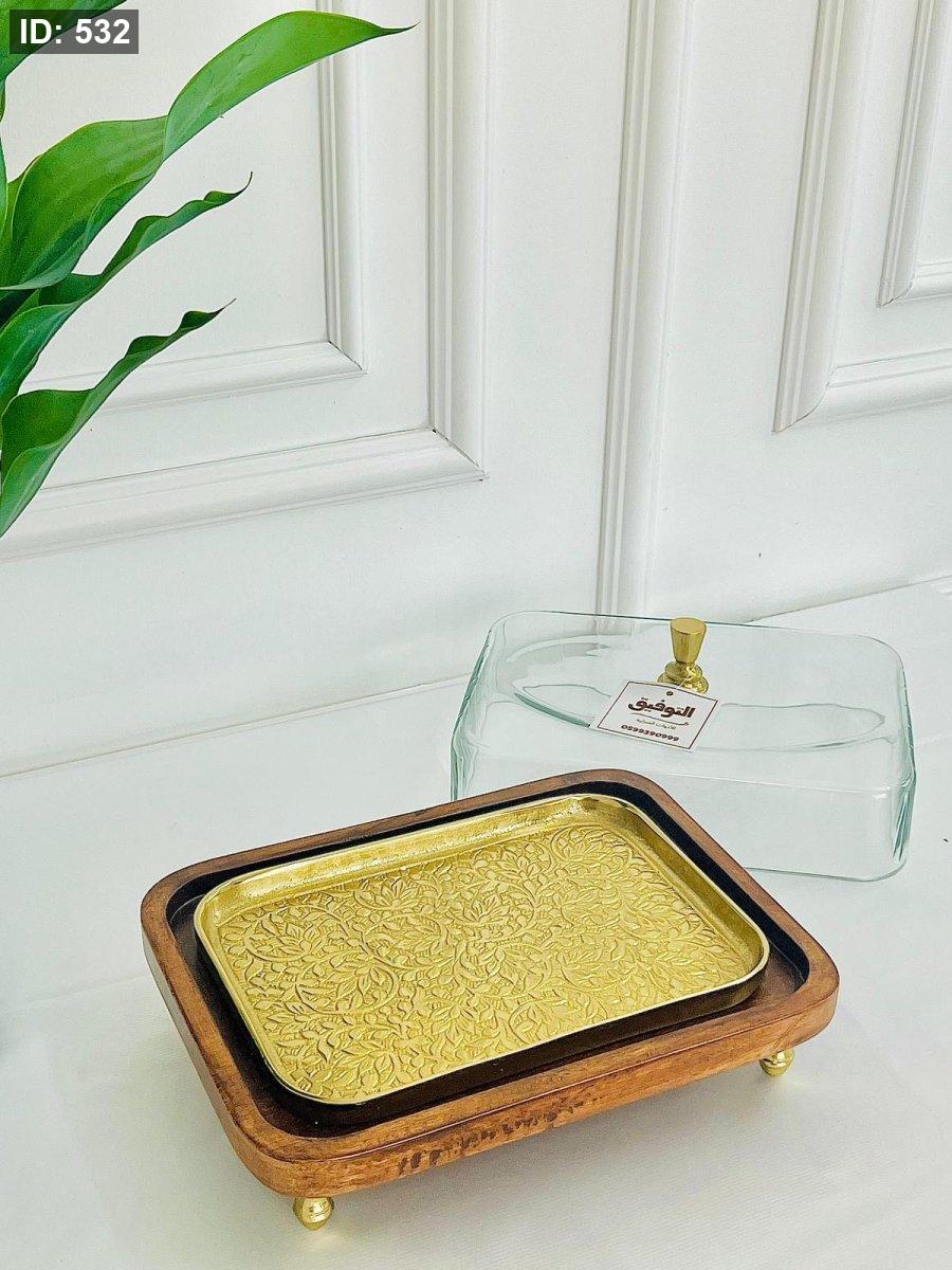 مضيفة مربعة قاعدة خشب أكاسيا هندي مع غطا قزاز