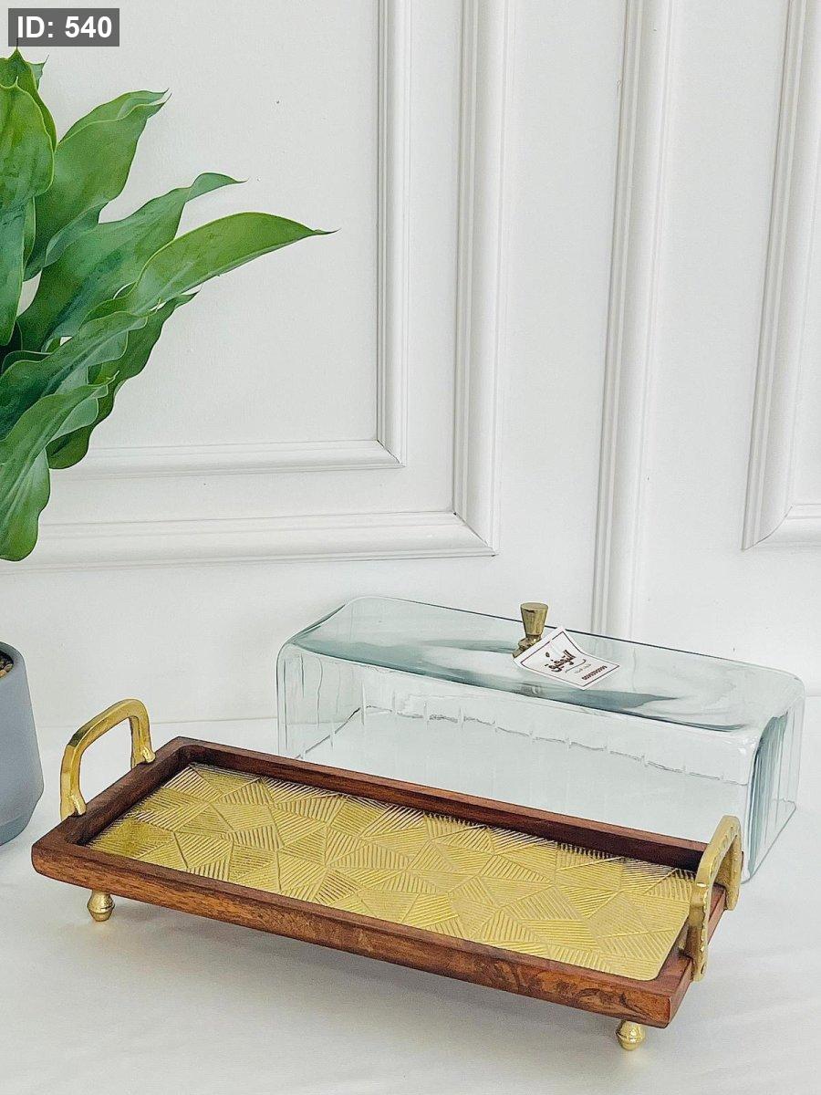 جاط مستطيل قاعدة خشب مع غطا قزاز