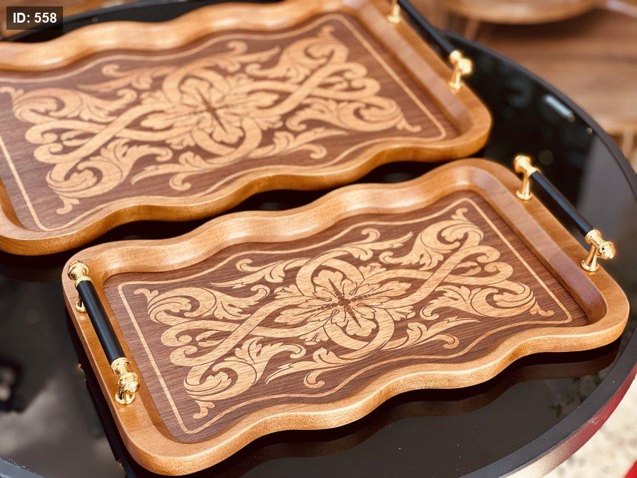 صواني خشب طبيعي ضيافة مستطيل زك زاك قطعتين