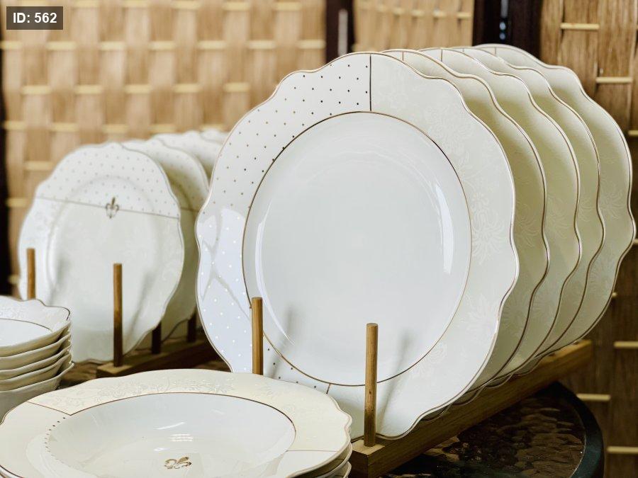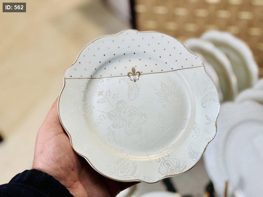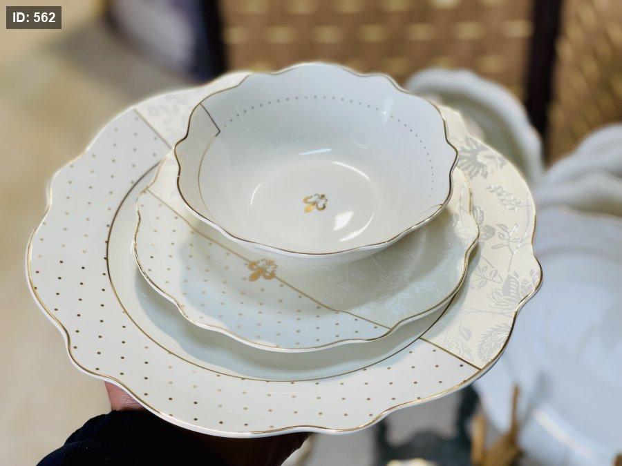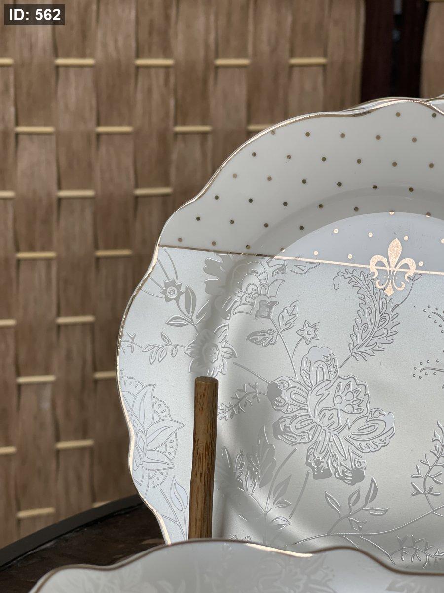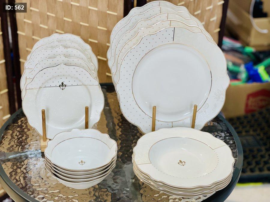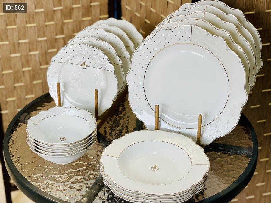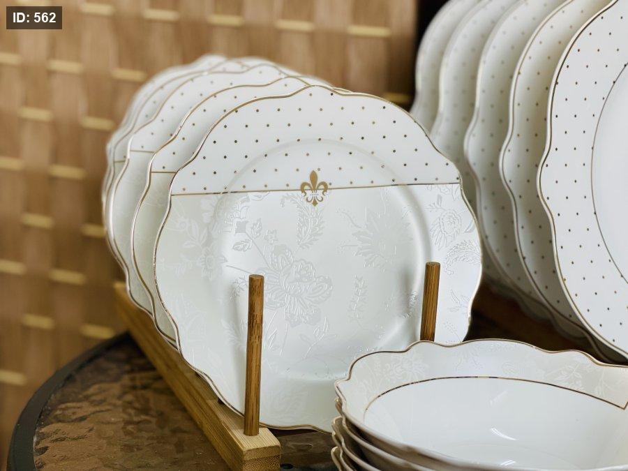 طقم صحون سفرة 24 قطعة منقط ودانتيل
